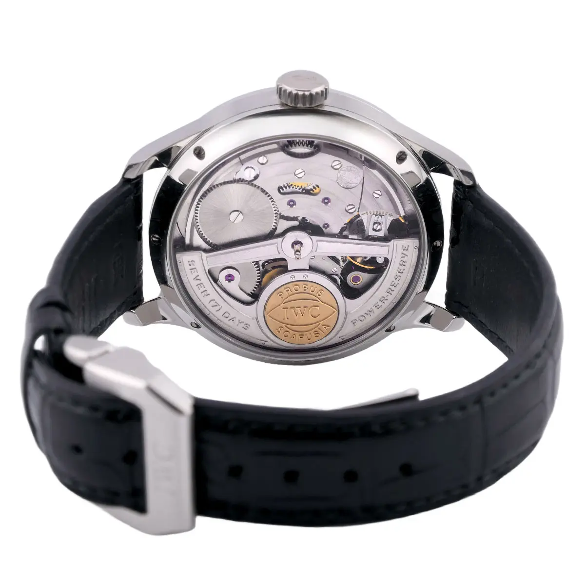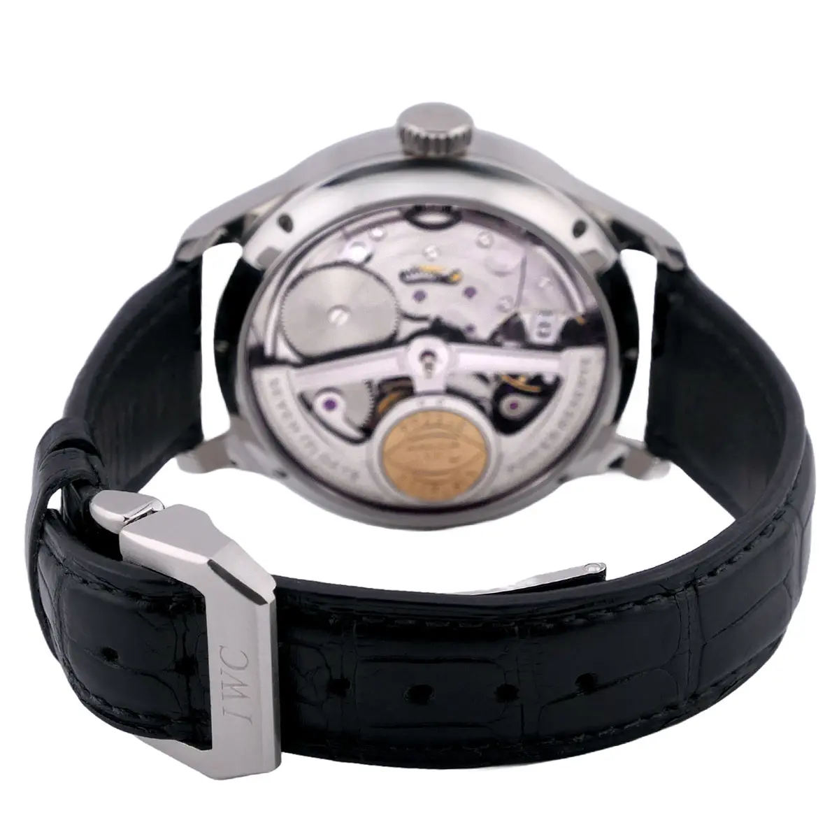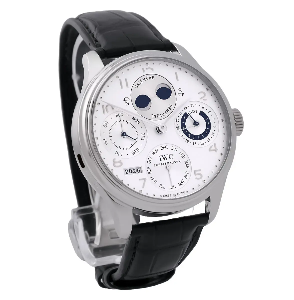 The Portugieser Perpetual Calendar has embodied the most successful interpretation of the perpetual calendar from Schaffhausen since 2003. As the successor to the legendary reference 5021 established the IW502111 the mechanical calendar program developed by Kurt Klaus, which works without manual correction up to the year 2100. The limitation to 250 pieces in 950 platinum underlines the exclusive character of this complication watch, which combines IWC's engineering skills with the design language of the 1930s. The fully coordinated calendar system with radial date hand, month display at 6 o'clock and year display for the century and millennium is a benchmark for user-friendly perpetual calendars.