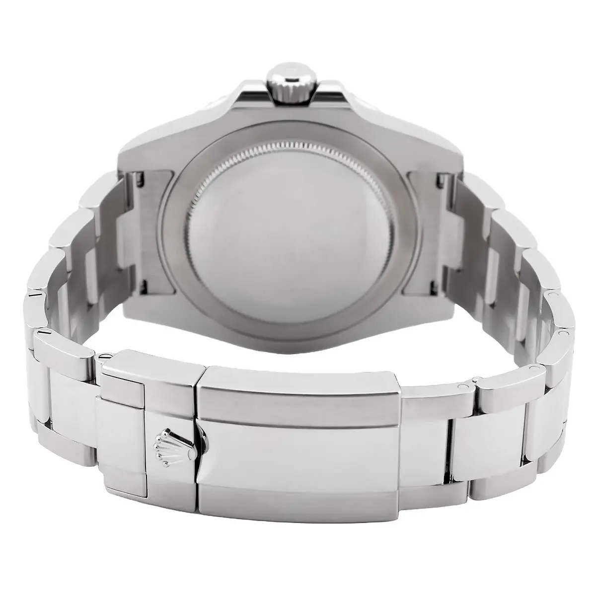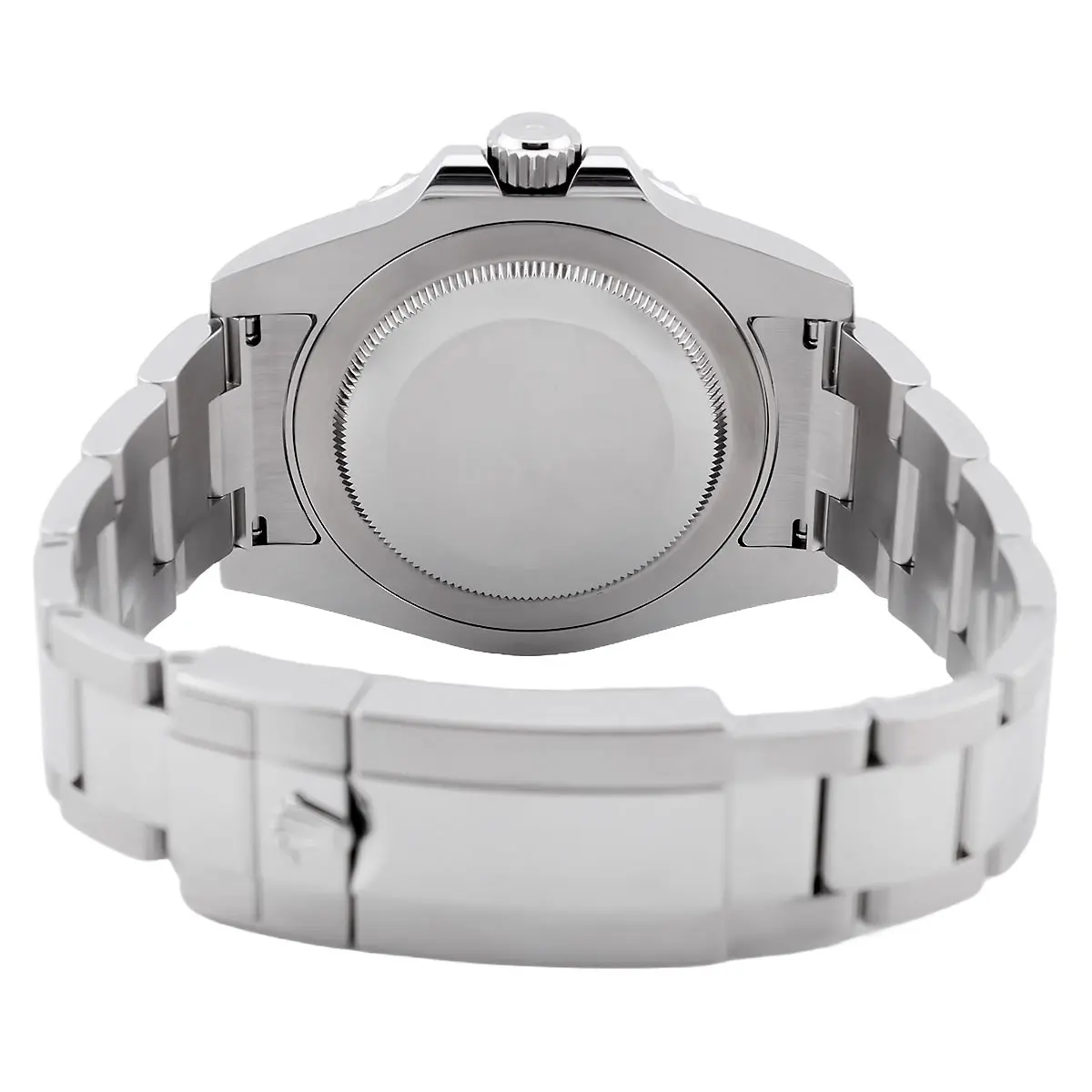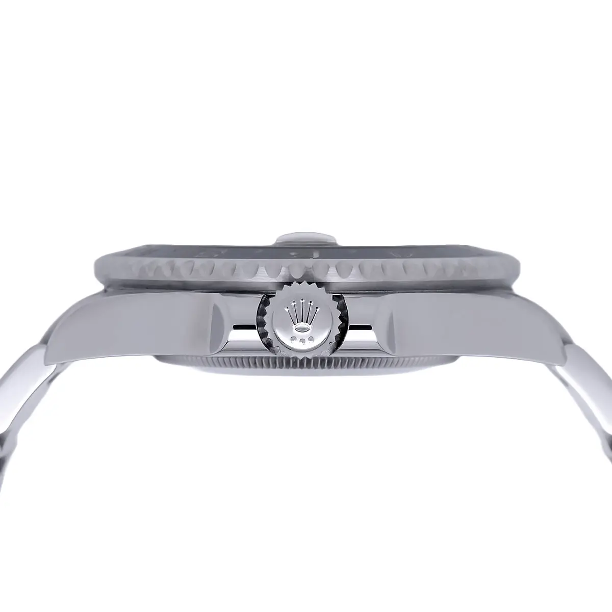 A special feature of the ROLEX GMT-Master II is the combination of style and functionality. The black dial elegantly accentuates the appealing design in combination with the green GMT hand. This color combination is indeed very practical, as it ensures clear legibility under various lighting conditions and is also pleasing to the eye. In addition, the case is made entirely of solid stainless steel, which makes the watch extremely lightweight and hard-wearing. The bezel is finished in a striking black. It allows the second time zone to be set fairly accurately. Whether for business or leisure, this balanced liaison of aesthetics and functionality makes the GMT-Master II an ideal option for any occasion.