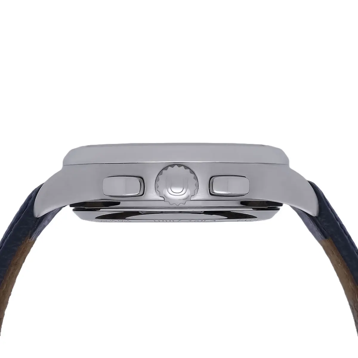 The heart of the watch is the hand-wound caliber UNG-59.S1, which is visible in all its glory through the sapphire crystal case back. It has been specially modified to enable the classic bicompax arrangement without an interfering hour counter. Technically, the movement is state-of-the-art: a Silicon spiral guarantees resistance to magnetic fields and ensures high rate stability, while the power reserve is a comfortable 60 hours. The finish is typical Glashütte - striping on the three-quarter plate, blued screws and beveled edges testify to the meticulous craftsmanship. A collector's item that combines mechanical excellence with a striking, rare design.