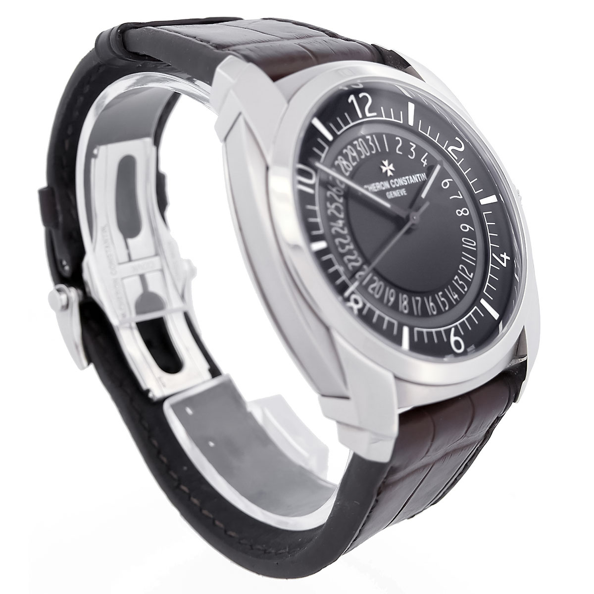 Luxurious crocodile leather strap with a sophisticated folding clasp in Maltese cross design.