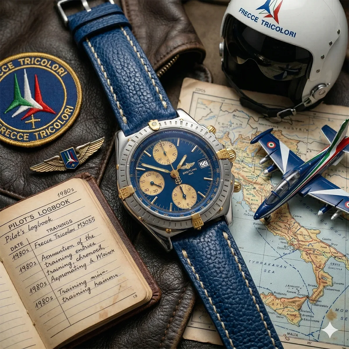 Die Entwicklung des Modells geht auf die Kooperation mit der Kunstflugstaffel Frecce Tricolori in den 1980er Jahren zurück. Mit der Referenz B13050.1 manifestiert sich die Evolution dieses professionellen Fliegerchronographen in den 1990er Jahren. Ein prägnantes Konstruktionsmerkmal bleibt die funktionale Reiterlünette, die ursprünglich für den Schutz des Glases und die Bedienung mit Fliegerhandschuhen konzipiert wurde. Das Instrument verkörpert kompromisslose Funktionalität für die Aviatik und markiert eine prägende Design-Ära der Manufaktur.