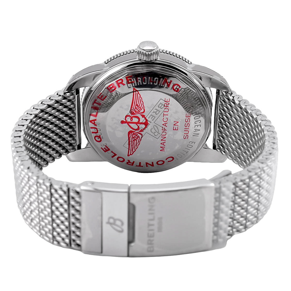 Im Herzen schlägt das automatische Manufakturkaliber Breitling B20 mit einer beeindruckenden 70 Stunden Gangreserve und COSC-Chronometer-Zertifizierung. So können Sie Ihre Uhr auch über Wochenenden oder Tage ohne Tragen bedenkenlos ablegen, ohne den Gang erneut einstellen zu müssen. Die unidirektionale Drehlünette mit Keramik-Inlay und die Wasserdichtigkeit bis 200 Meter machen diese Uhr zum perfekten Begleiter für Taucher und Wassersportler.
