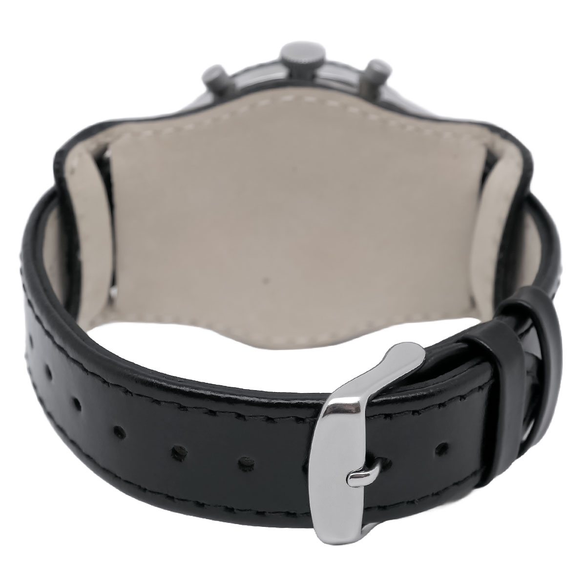 Der HEUER Bundeswehr Chronograph Flyback mit der Referenz 1550 SG ist ein legendärer Militärchronograph und wurde speziell für die Piloten der Bundeswehr in den 1960er und 1970er Jahren entwickelt und zeichnet sich durch ihre Robustheit und Funktionalität aus. HEUER produzierte diesen Chronographen in Zusammenarbeit mit Leonidas. Die Uhr ist bekannt für ihre Flyback-Funktion, die es ermöglicht, den Chronographen sofort zurückzusetzen und neu zu starten. Das Gehäuse besteht aus Edelstahl und hat typischerweise einen Durchmesser von etwa 42-43 mm. Das schlichte, schwarze Zifferblatt mit arabischen Ziffern sorgt für eine hervorragende Ablesbarkeit, auch unter schwierigen Bedingungen. Die drehbare Lünette ermöglicht es, Zeitintervalle zu messen. Plexiglas schützt das Zifferblatt.