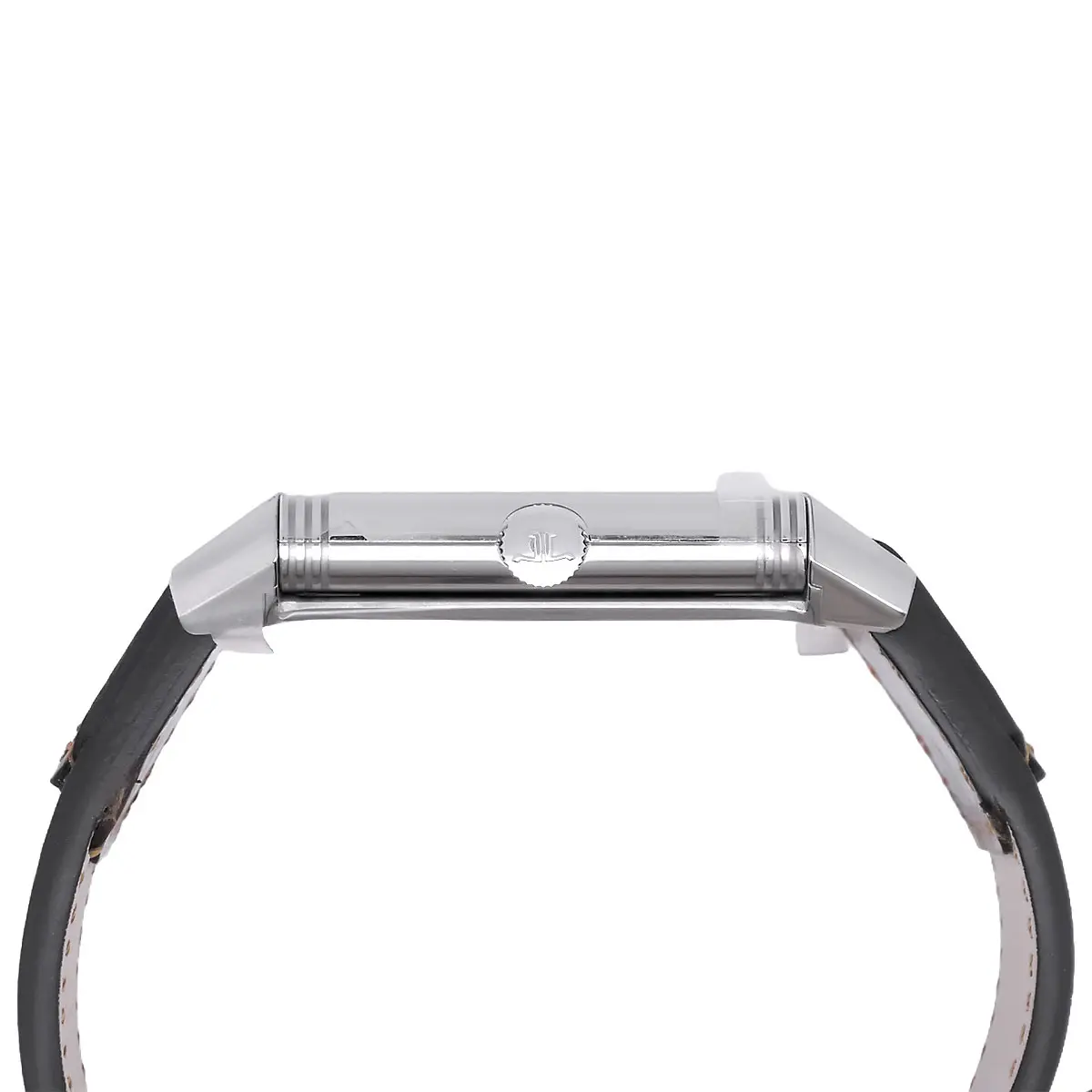 Die Referenz Q2438522 repräsentiert die puristischste Form der Grande Maison in der Medium-Größe. Das Wendegehäuse aus Edelstahl zeigt die charakteristischen drei Kanneluren (Gadroons), die den oberen und unteren Rand des Rahmens definieren. Ein besonderes Augenmerk gilt dem NOS-Zustand (New Old Stock): Die Uhr stammt aus Januar 2025, ist ungetragen und weist keinerlei Mikrokratzer auf den hochglanzpolierten Flächen oder dem massiven Gehäuseboden auf. Letzterer bietet die ideale Fläche für eine personalisierte Gravur oder verbleibt in seiner spiegelnden, unberührten Ästhetik. Das Casa Fagliano Design-Armband aus Kalbsleder unterstreicht den Vintage-Charakter, ohne die Strenge des Designs zu brechen.