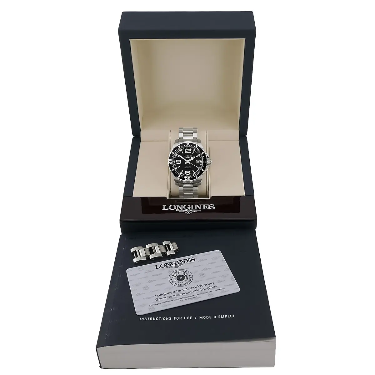 Herzstück dieser HydroConquest ist das moderne Kaliber L888. Dieses Automatikwerk basiert auf einer exklusiv für Longines entwickelten Architektur und zeichnet sich durch eine deutlich erhöhte Gangreserve von ca. 72 Stunden aus – ein wesentlicher Vorteil gegenüber Standardwerken dieser Klasse. Die Unruh arbeitet mit einer präzisen Amplitude, was die Zuverlässigkeit dieses zertifizierten Zeitmessers garantiert. Dank der verschraubten Krone und des massiven Gehäusebodens ist die Uhr bis zu einer Tiefe von 300 Metern (30 bar) wasserdicht. Das Edelstahlband mit doppelter Sicherheitsfaltschließe und integrierter Tauchverlängerung rundet das technische Gesamtpaket ab. Dieses Exemplar aus dem Jahr 2020 befindet sich in einem exzellenten, getragenen Zustand und wird als vollständiges Full Set geliefert.