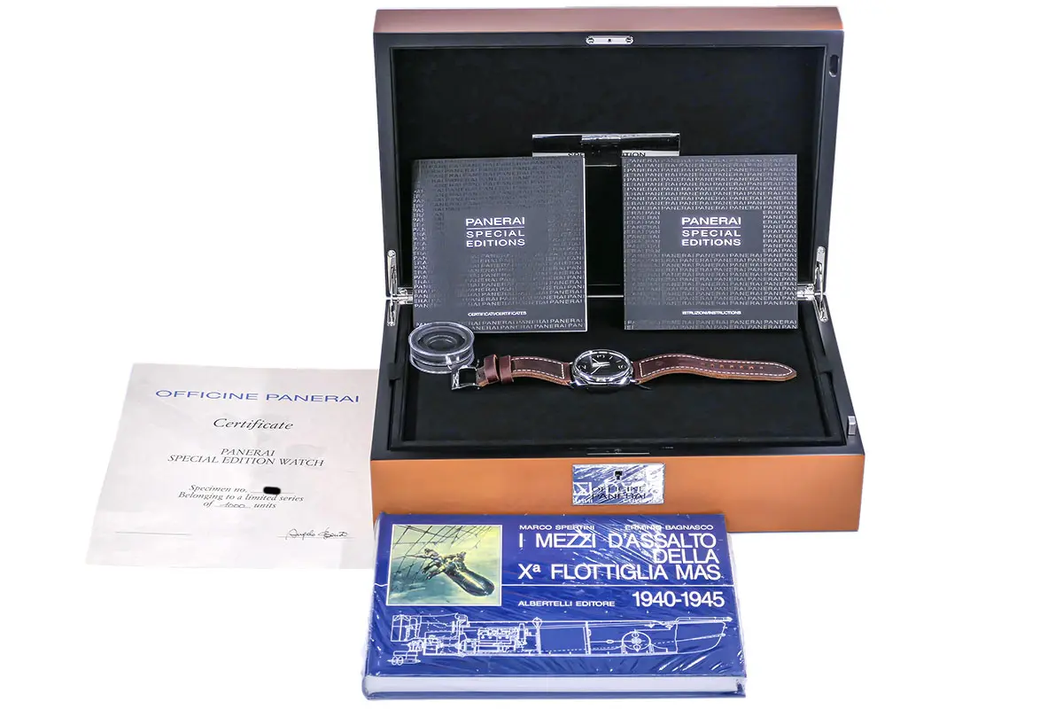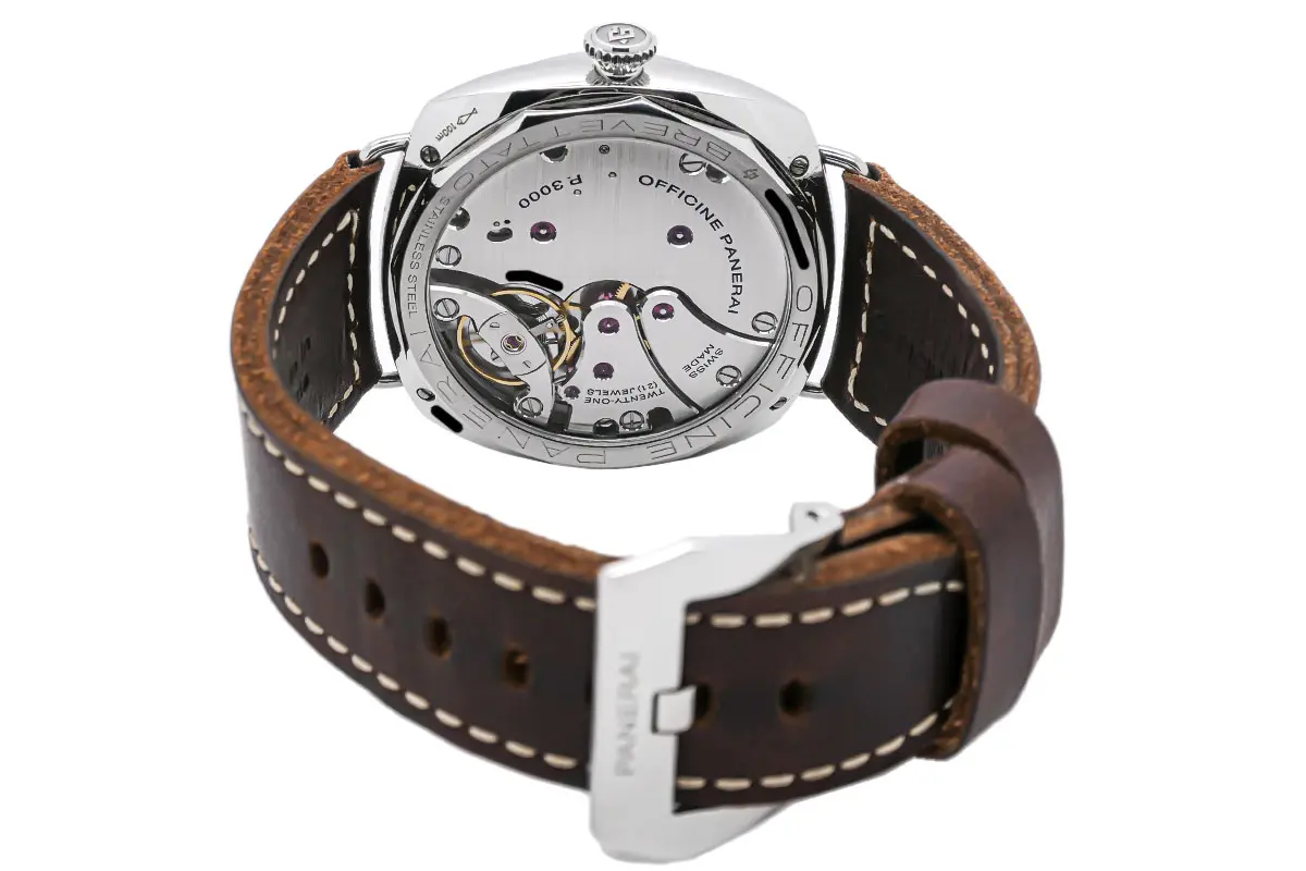 Die Officine Panerai Radiomir Special Editions 3 Days 47 mm mit der Referenz PAM00721 ist eine Hommage an die historischen Wurzeln von Panerai und zeichnet sich durch ihr klassisches Radiomir-Design und ihre begrenzte Verfügbarkeit aus. Das 47-mm-Gehäuse besteht aus poliertem Edelstahl, was der Uhr ein elegantes und robustes Aussehen verleiht. Das Radiomir-Gehäuse zeichnet sich durch seine kissenförmige Form und die drahtbügelförmigen Bandanstöße aus, die an die ersten Panerai-Taucheruhren erinnern. Die verschraubte Krone trägt zur Wasserdichtigkeit bei. Die Lünette ist glatt und poliert, was das schlichte und klassische Design der Uhr unterstreicht. Das schwarze „sandwich“ Zifferblatt ist mit beigen Leuchtmarkierungen und Zeigern ausgestattet, die eine hervorragende Ablesbarkeit gewährleisten. Die Zifferblätter haben ein sehr Historisches aussehen. Ein gewölbtes Saphirglas schützt das Zifferblatt und verleiht der Uhr einen historischen Look. Die Uhr ist mit einem Lederarmband ausgestattet, das den Vintage-Stil der Uhr ergänzt. Die Uhr wird vom Panerai Manufakturkaliber P.3001 angetrieben, einem Handaufzugswerk, das für seine Präzision und Zuverlässigkeit bekannt ist. Die Uhr hat eine Gangreserve von 3 Tagen.