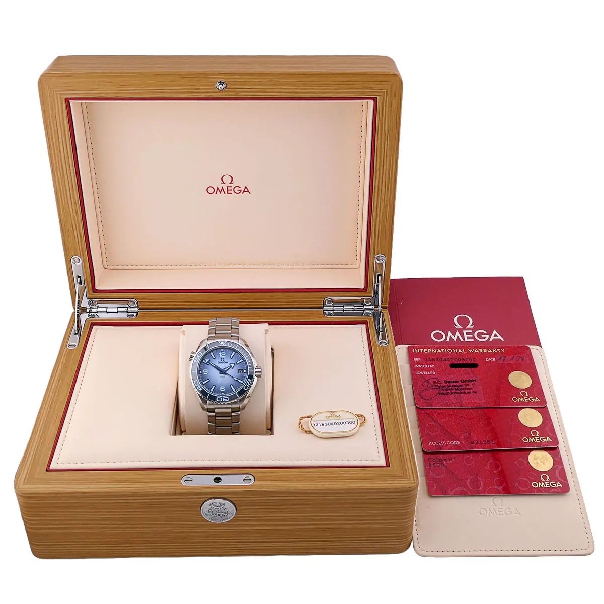 Diese Edition markiert einen signifikanten Meilenstein in der Geschichte der Taucheruhren. Die Referenz 215.30.40.20.03.002 ist Teil der Jubiläumskollektion zum 75-jährigen Bestehen der Seamaster-Linie und besticht durch eine beeindruckende visuelle Tiefe. Das Zifferblatt aus Keramik, versehen mit einem PVD-Finish im Farbton „Summer Blue“, weist einen radialen Farbverlauf auf, der die Lichtverhältnisse in mittleren Meerestiefen symbolisiert. Umrahmt wird dieses Schauspiel von einer blauen Keramiklünette mit einer Tauchskala aus „Grand-Feu“-Emaille in Hellblau.