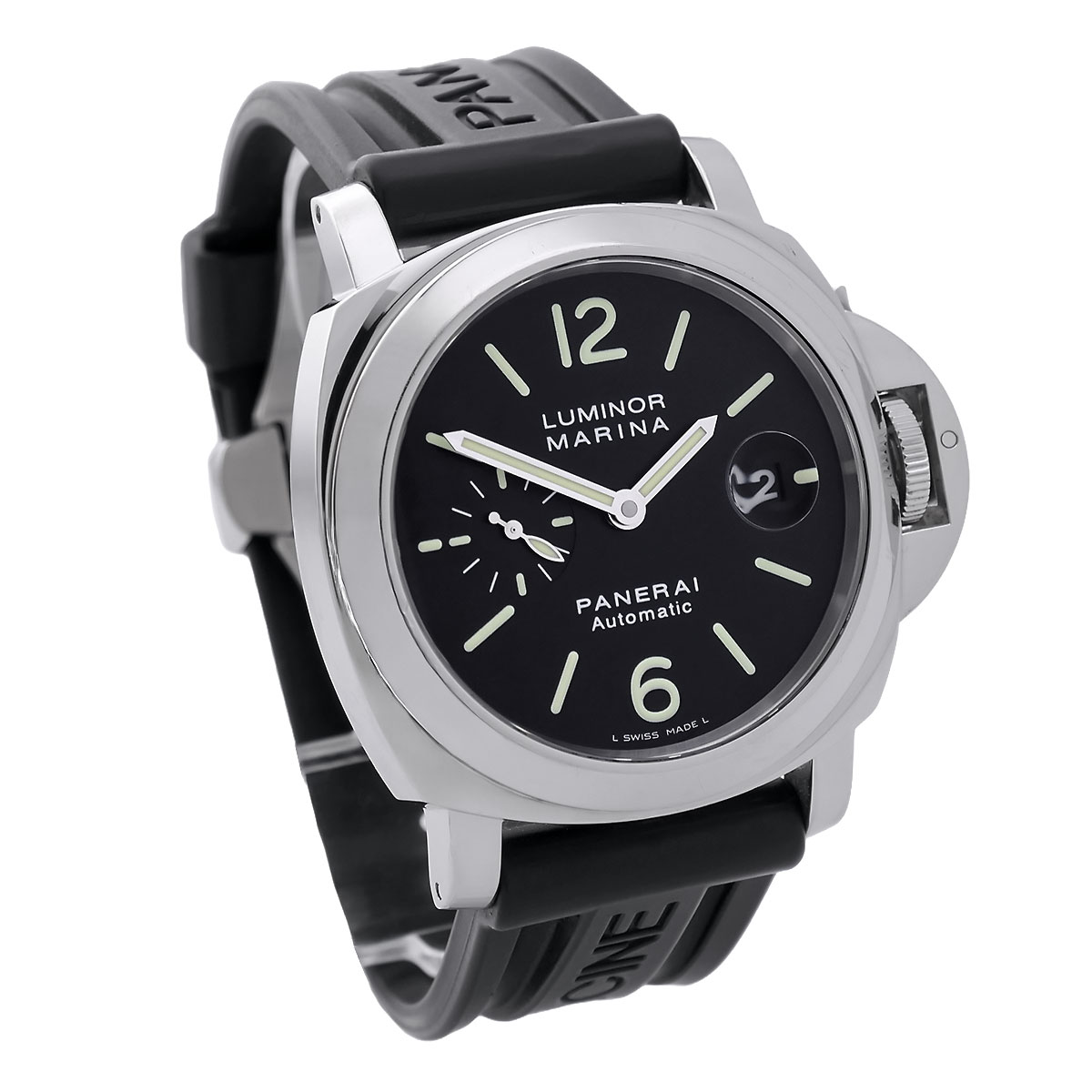 Diese Panerai Luminor Marina PAM00104 verbindet mit dem typischen Military‑Charme der Marke moderne Alltagstauglichkeit. Das markante 44‑mm‑Edelstahlgehäuse samt dem berühmten Kronenschutzbügel bietet eine starke Erscheinung am Handgelenk, ohne unnatürlich zu wirken.
