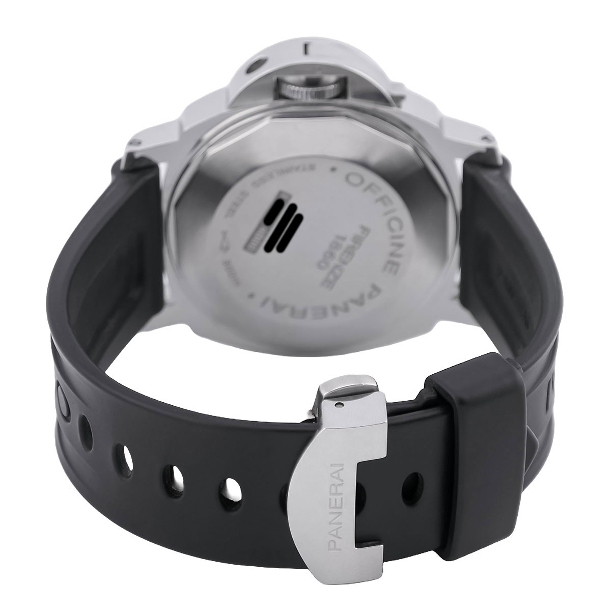 Unter dem schwarzen Zifferblatt arbeitet das automatische Kaliber OP III. Es ist ein COSC‑zertifiziertes Chronometerwerk auf Basis des Valjoux 7750‑P1, das Zuverlässigkeit, Robustheit und eine Gangreserve von rund 42 Stunden bietet. Die kleine Sekunde bei 9 Uhr und das Datum um 3 Uhr sorgen für das klassische Luminor‑Gesicht, das Panerai‑Liebhaber auf den ersten Blick erkennen.