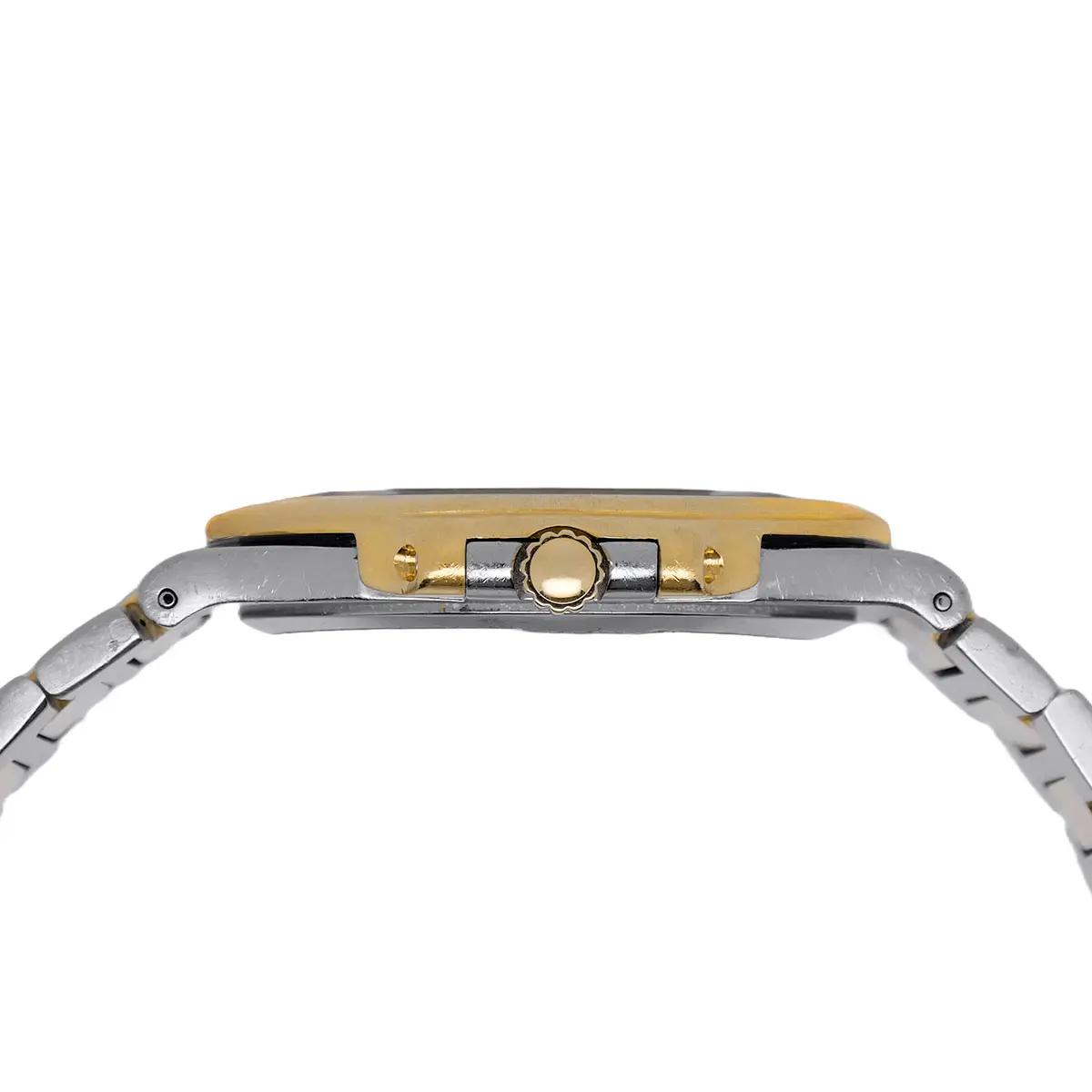 Im Inneren arbeitet das ultraflache Kaliber 28-255 C, basierend auf dem legendären JLC 920 Rohwerk. Es gilt unter Kennern als eines der raffiniertesten Automatikwerke des 20. Jahrhunderts, ausgestattet mit einer Schwungmasse mit Rubin-Lagerung auf einer Beryllium-Bronze-Schiene. Der Verzicht auf einen Sekundenzeiger unterstreicht die puristische Ruhe des Zifferblatts mit seiner typischen horizontalen Reliefprägung. Das Exemplar wurde 2025 einem umfassenden Service durch einen autorisierten Fachhändler unterzogen, was die technische Integrität für die kommenden Jahre sichert. Die Substanz von Gehäuse und dem integrierten Band ist hervorragend erhalten, Kanten und Fasen präsentieren sich scharf und authentisch.