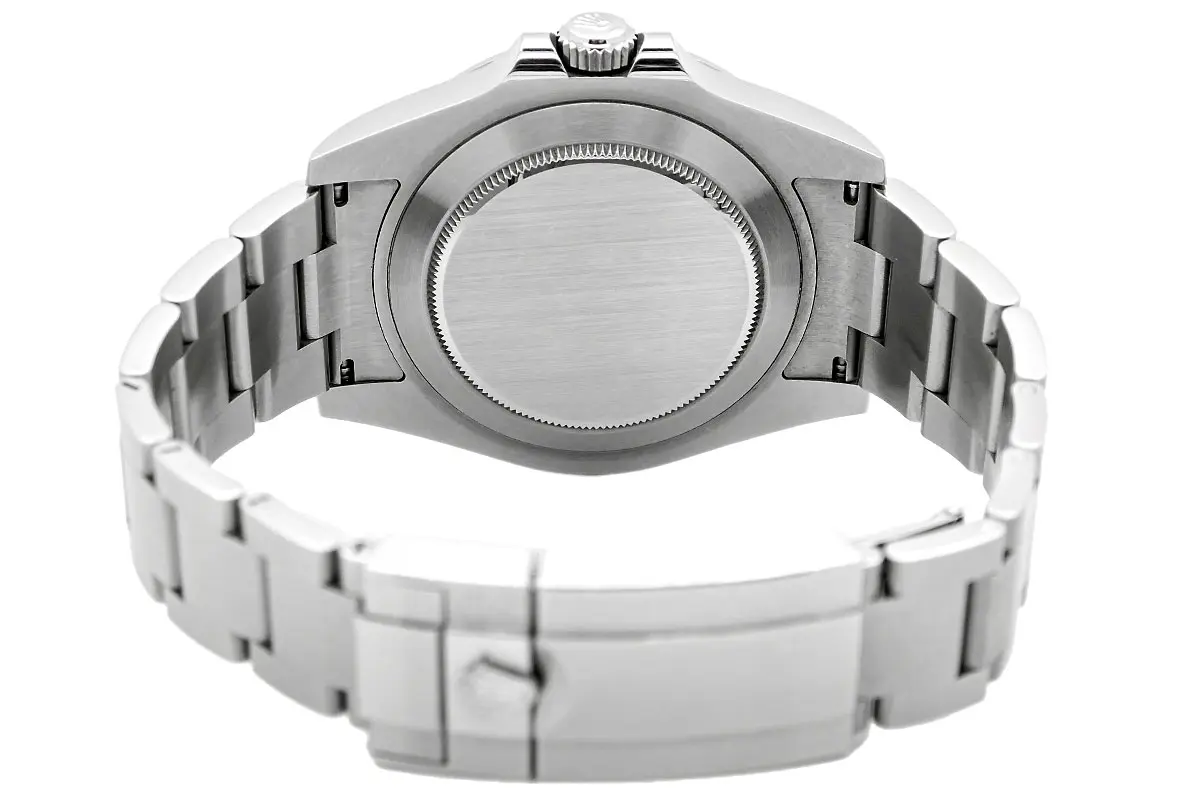 Das Zifferblatt ist auf maximale Kontrastwirkung ausgelegt. Die vergrößerten Indizes und Zeiger sind mit blauer Chromalight-Leuchtmasse beschichtet, die eine langanhaltende Leuchtkraft im Dunkeln garantiert. Der orangefarbene 24-Stunden-Zeiger dient in Kombination mit der Lünette zur Unterscheidung von Tag und Nacht – eine Funktion, die ursprünglich für Höhlenforscher und Polarforscher konzipiert wurde – oder zur Anzeige einer zweiten Zeitzone. Das satinierte Oyster-Band mit polierten Flanken und Oysterlock-Schließe inklusive Easylink-Verlängerung rundet das funktionale Erscheinungsbild ab.