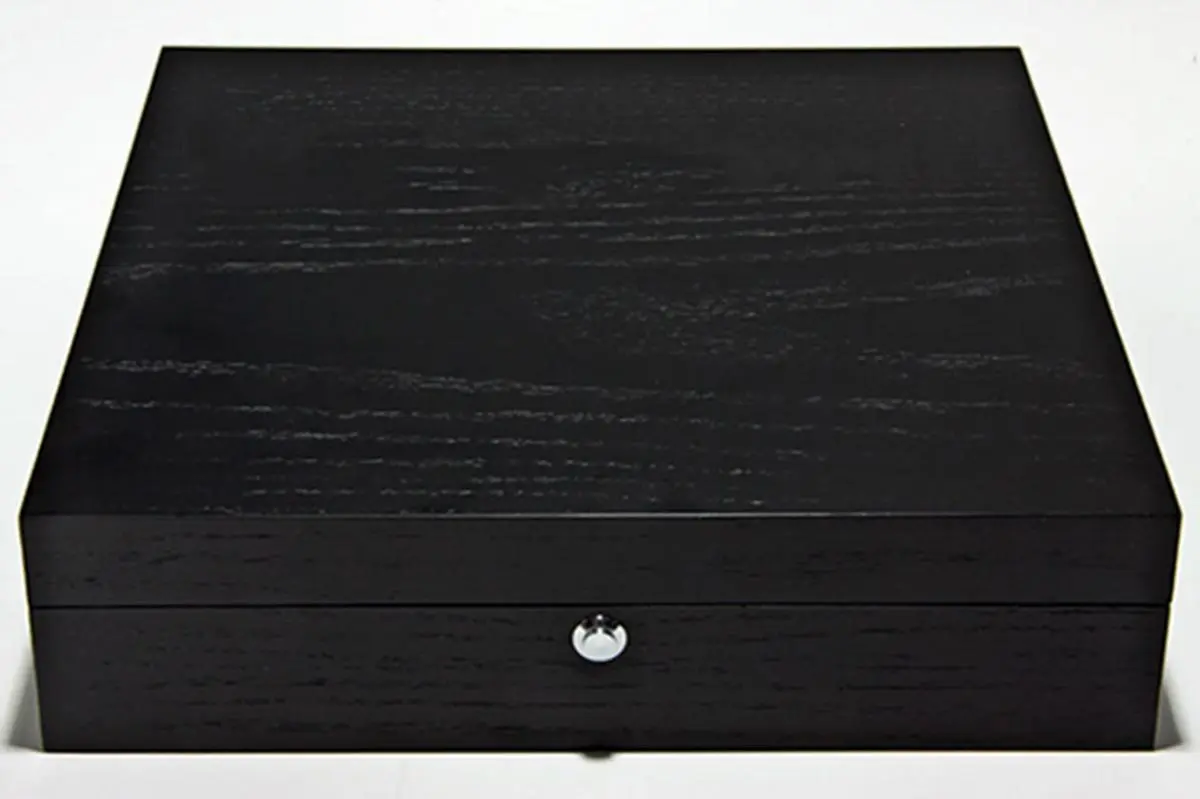Uhrenbox 12 Uhren Eschenholz Mattschwarz L33B32H8-12 S Seitenansicht